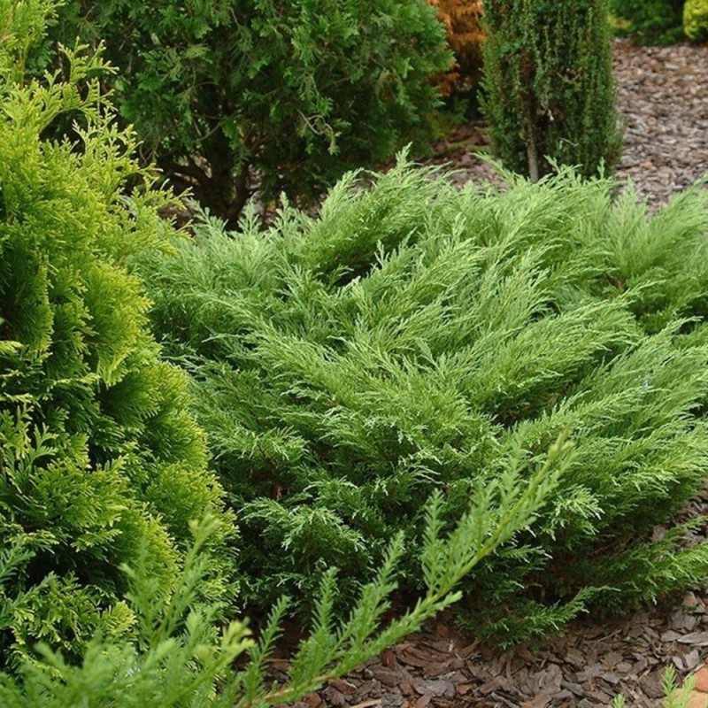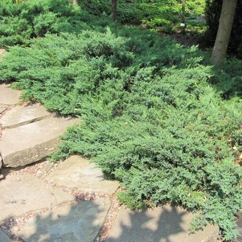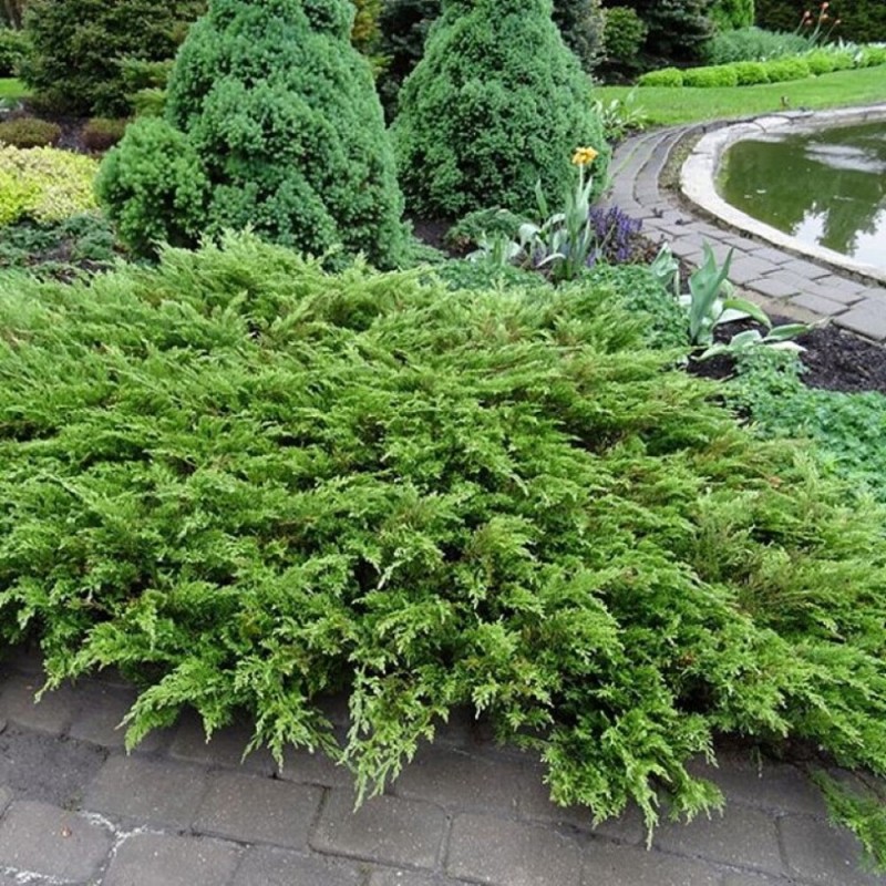 Этот сорт славится своей плотной, стелющейся формой и насыщенной зеленой окраской хвои, что делает его идеальным выбором для оформления альпийских горок, рокариев и склонов.