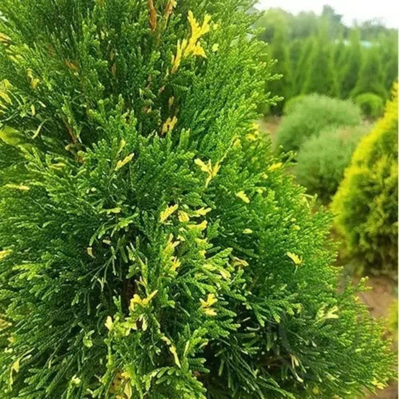 Этот сорт отличается своей плотной, пирамидальной формой кроны и мягкой, блестящей хвоей, которая сохраняет свою насыщенно-зелёную окраску круглый год.