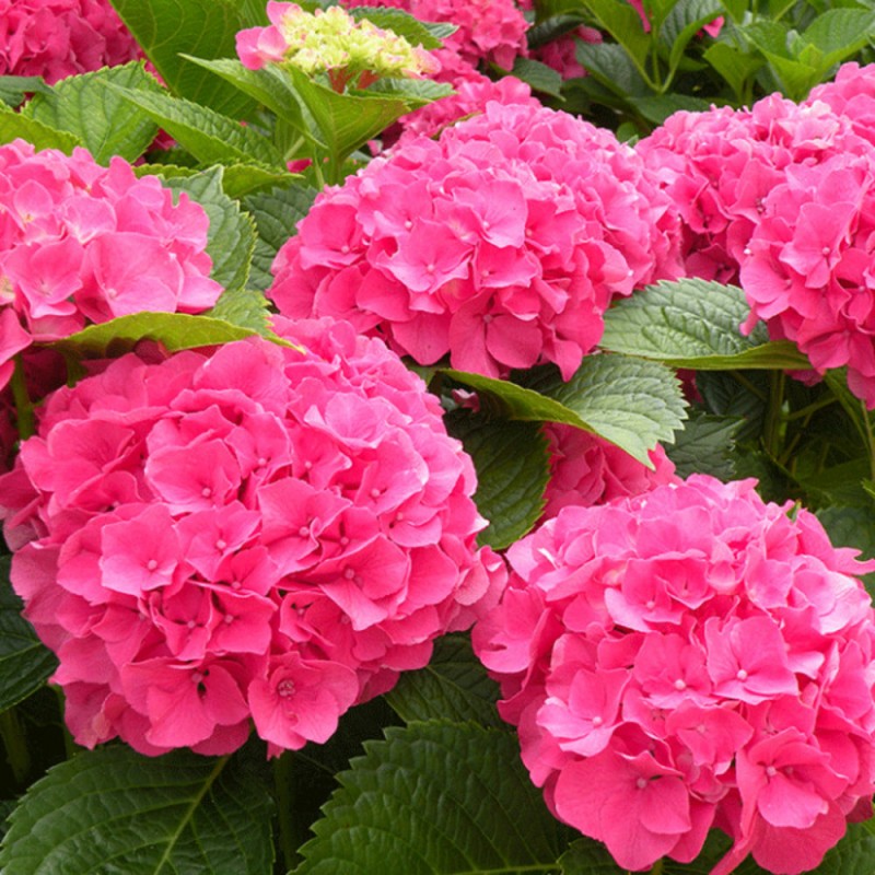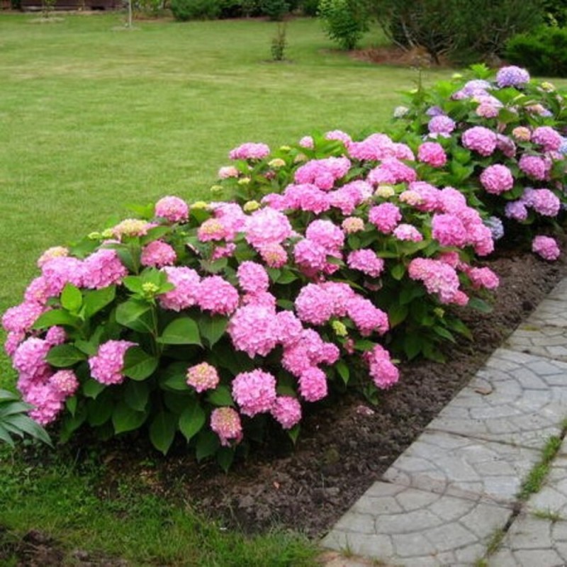 Оттенок цветов варьируется от светло-розового до насыщенно-розового, в зависимости от кислотности почвы.