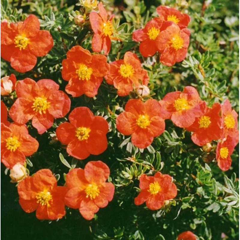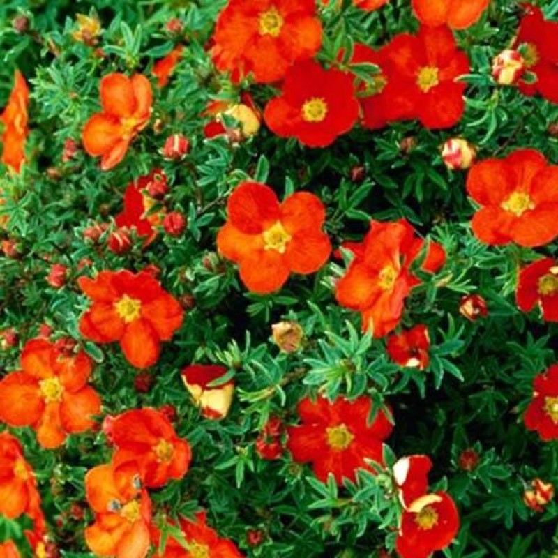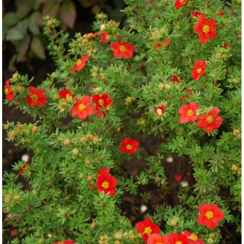 Лапчатка кустарниковая Ред Айс (Potentilla fruticosa Red Ace) - компактный кустарник с округлой формой, высотой до 0,6м и диаметром кроны до 1м.