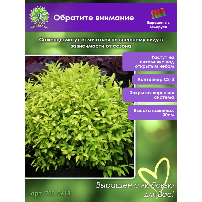 Принимаем заказы на бирючина в нашем интернет-магазине круглосуточно. Мы гарантируем качество саженца бирючина и надежность упаковки посылки.