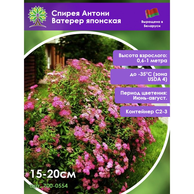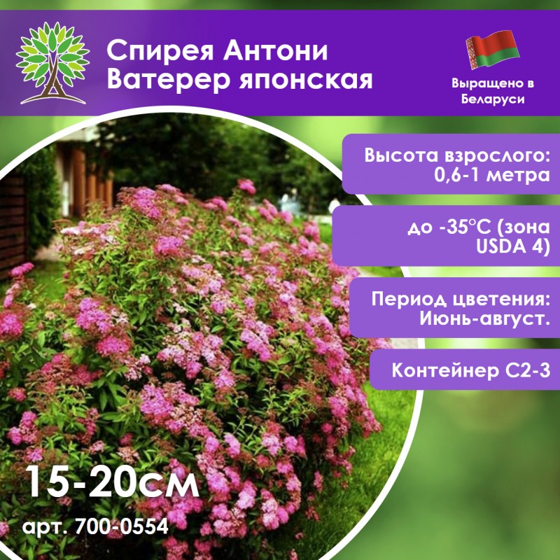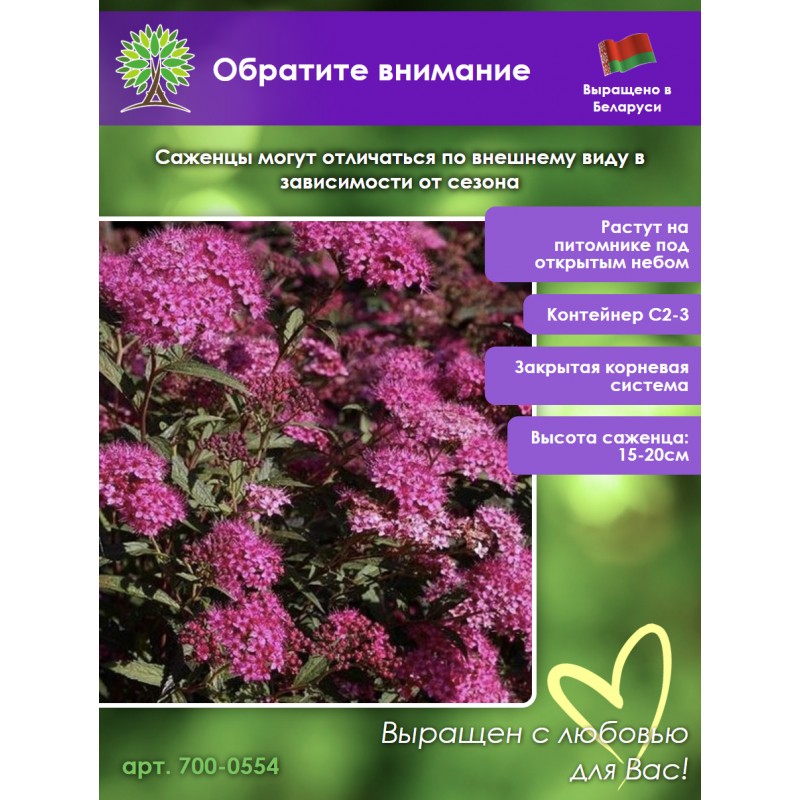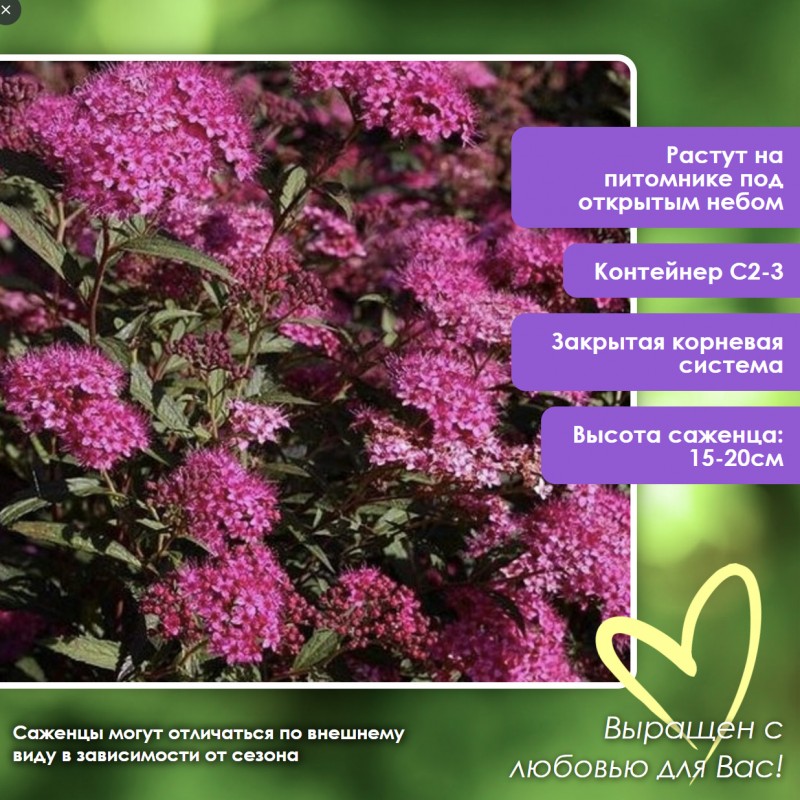 - Важное описание:Особенности ухода: Неприхотливая спирея, которая нуждается в минимальном уходе. Полив необходим только в засушливые периоды. Обрезка проводится весной для стимуляции роста и сохранения компактной формы куста