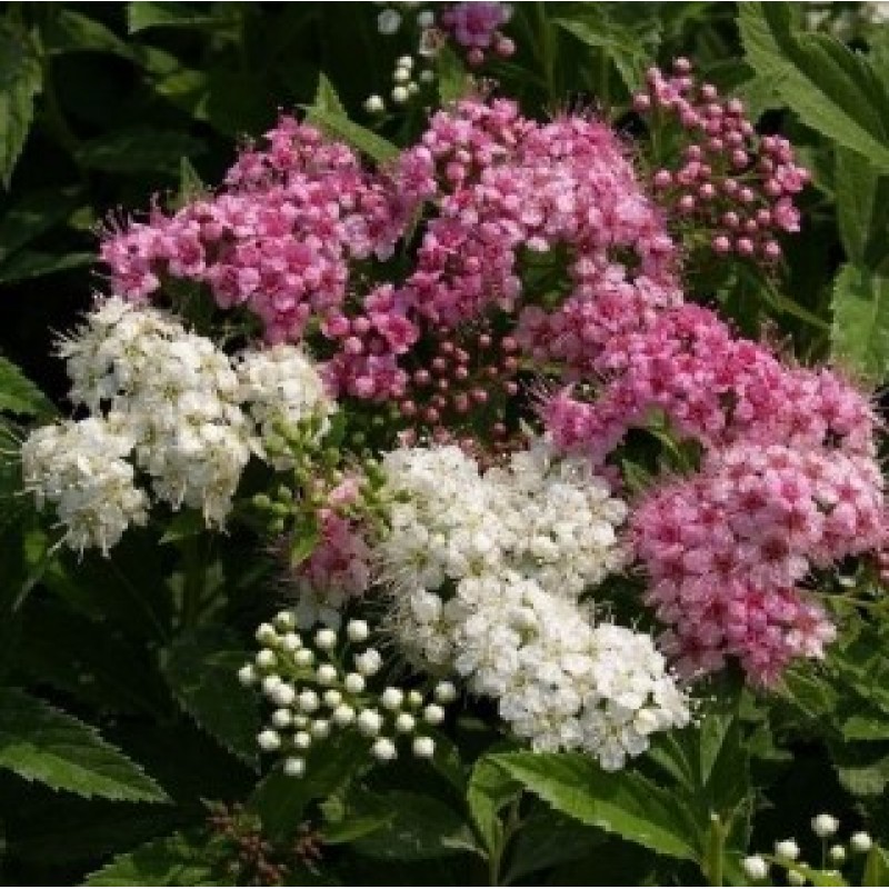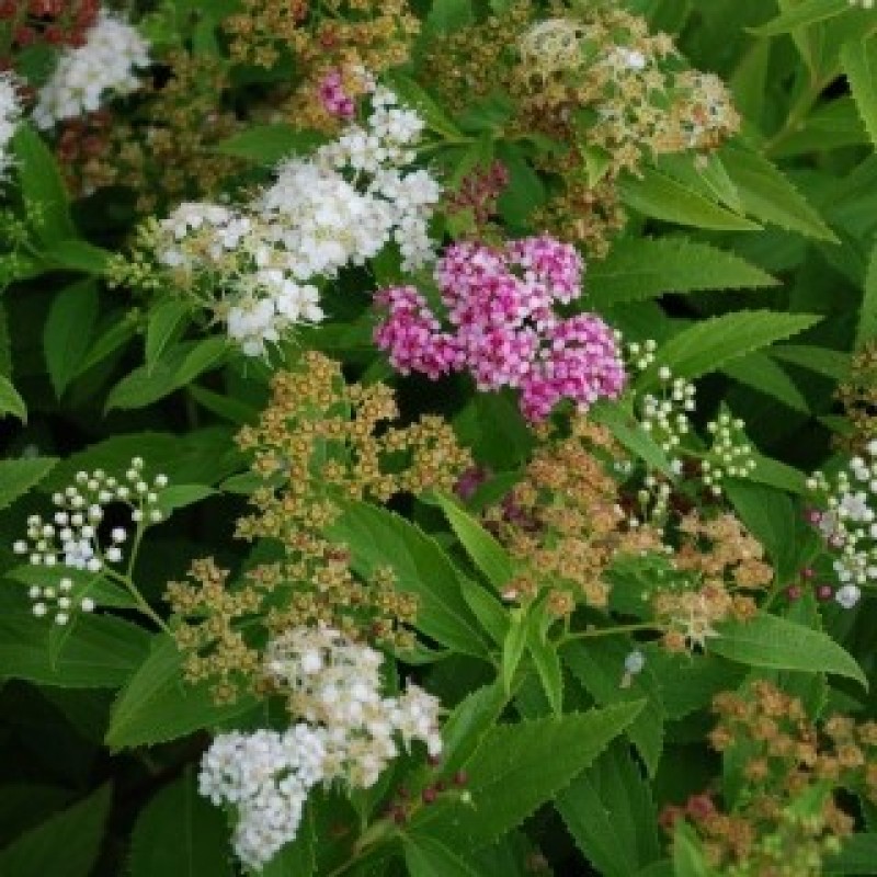 Такое разнообразие оттенков делает спирею "Генпей" настоящей жемчужиной сада, особенно в период цветения, который длится с июня по август.