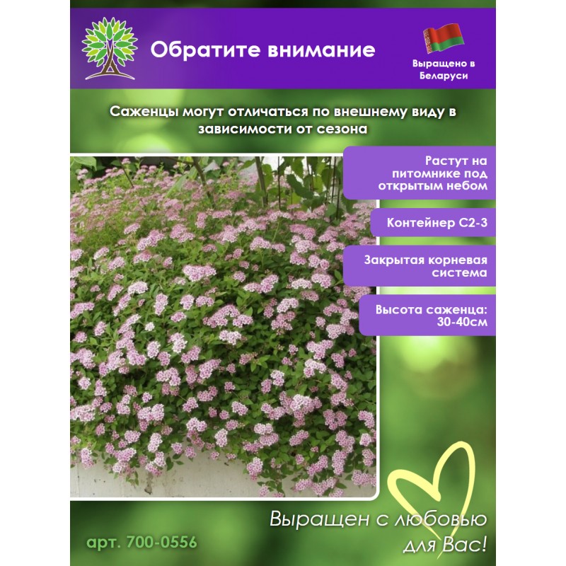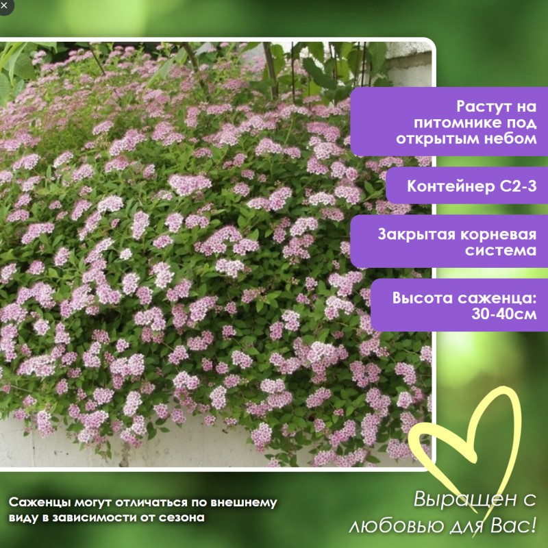 - Важное описание:Особенности ухода: Неприхотливая спирея, которая нуждается в минимальном уходе. Полив необходим только в засушливые периоды. Обрезка проводится весной для стимуляции роста и сохранения компактной формы куста