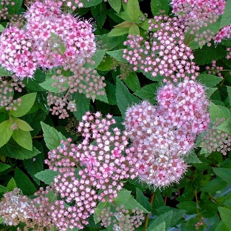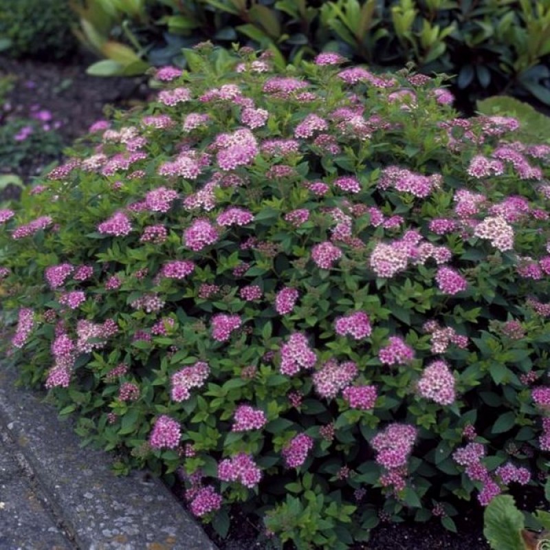 Спирея японская Манон - средней величины с компактной округлой формой, высота до 0.8м и ширина до 0.6м.