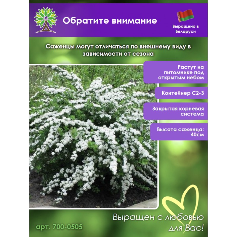 - Важное описание:Особенности ухода: Неприхотливая спирея, которая нуждается в минимальном уходе. Полив необходим только в засушливые периоды. Обрезка проводится сразу после цветения для стимуляции роста и сохранения аккуратной формы куста