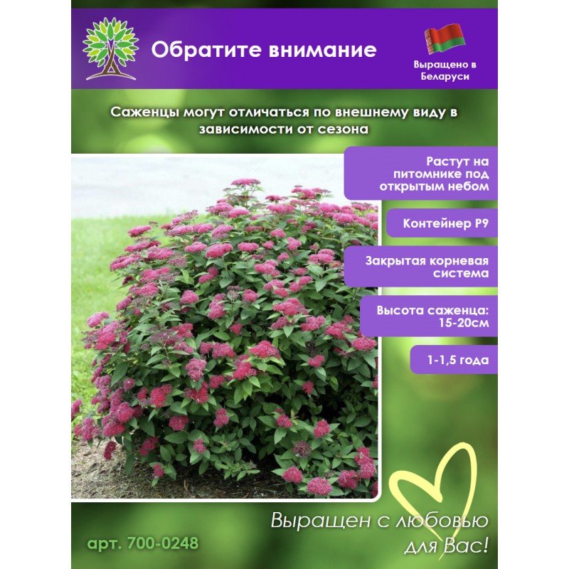 Принимаем заказы на спиреи в нашем интернет-магазине круглосуточно. Мы гарантируем качество саженца спирея и надежность упаковки посылки.