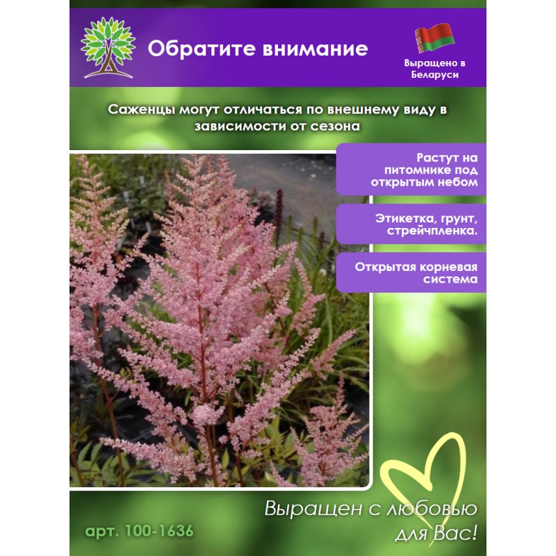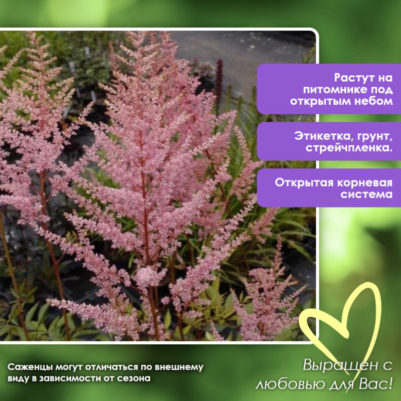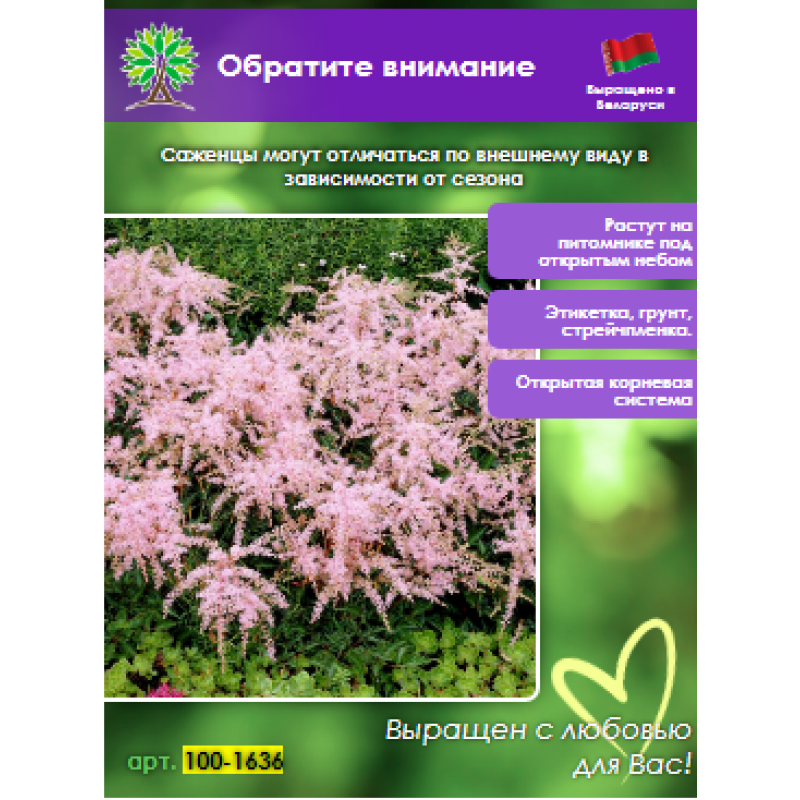Принимаем заказы на астильбу в нашем интернет-магазине круглосуточно. Мы гарантируем качество саженца астильба и надежность упаковки посылки.