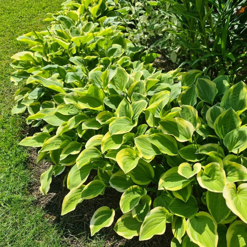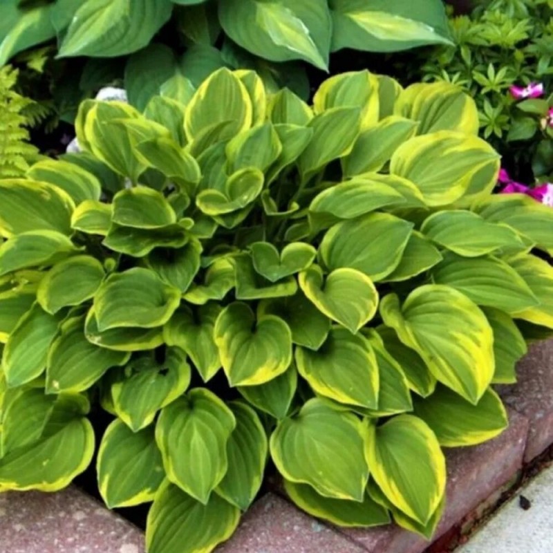 Хоста "ГОЛДЕН ТИАРА". Образует аккуратный куст округлой формы среднего размера.