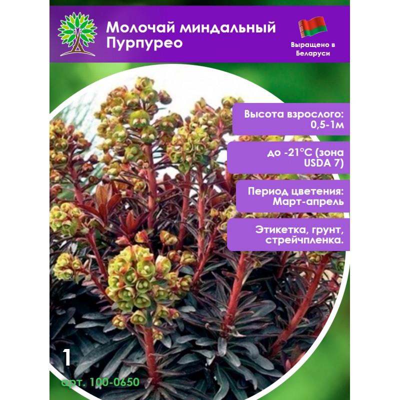 - Важное описание:Молочай миндальный "Пурпурео" содержит млечный сок, который может вызывать раздражение кожи и слизистых оболочек