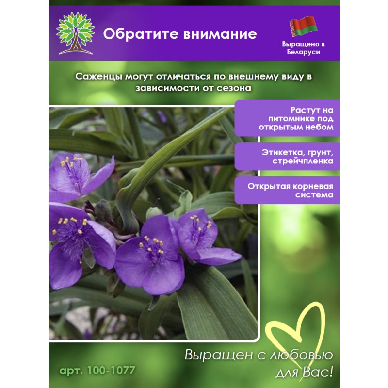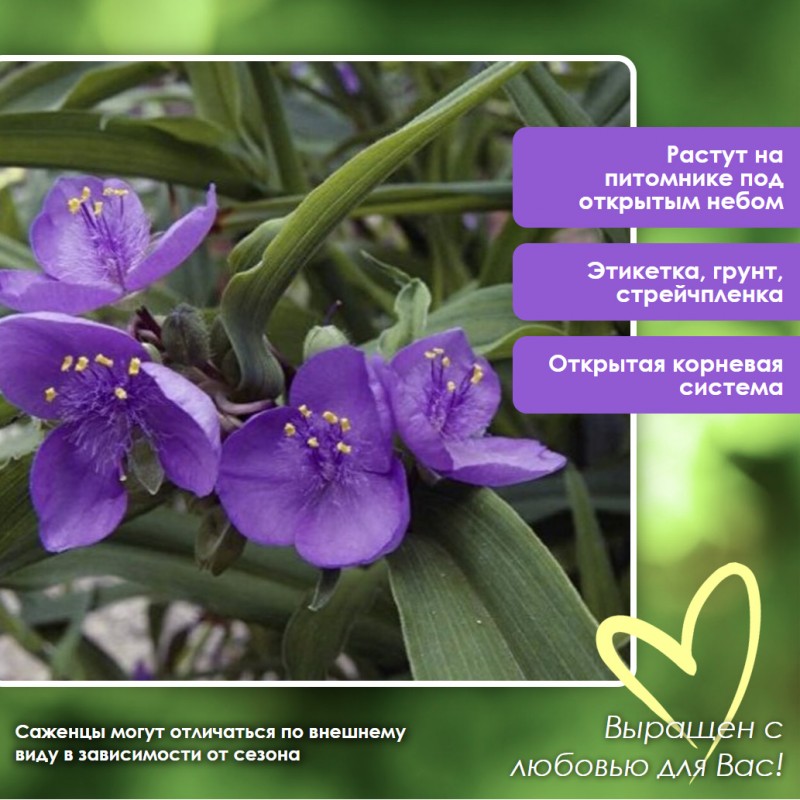 Принимаем заказы на традесканция в нашем интернет-магазине круглосуточно. Мы гарантируем качество саженца традесканция и надежность упаковки посылки.